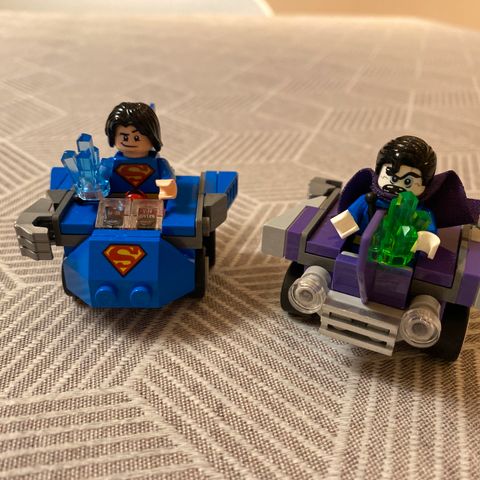 LEGO DC Comics Super Heroes byggesett med ulike deler inkludert hvite, blå og røde byggeklosser samt minifigurer. Settet inneholder flere instruksjonshefter for montering av ulike modeller.