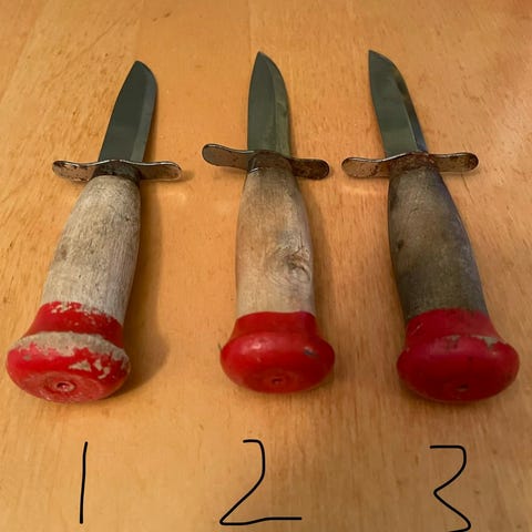 Speideren lærslire for kniv i brun farge. Sliren har en lengde på ca. 23 cm og bredde på ca. 4,5 cm. Den er utstyrt med metallknapp og et speideremblem på framsiden. Egnet for oppbevaring og sikring av kniv.se bilder angående merke