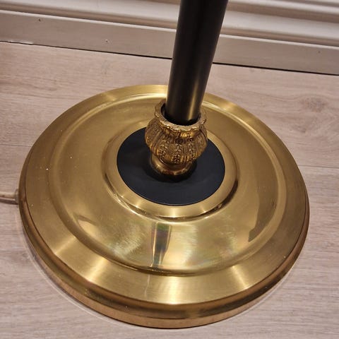 Ca. 25 år gammel stålampe fra LUMEN CENTER italia. Skjelden lampe. bruker halogen lysrør som kan dimmes. Noen små rift. Noe malingflekker på sokkel som må fjernes. Eller fremstår den pen.