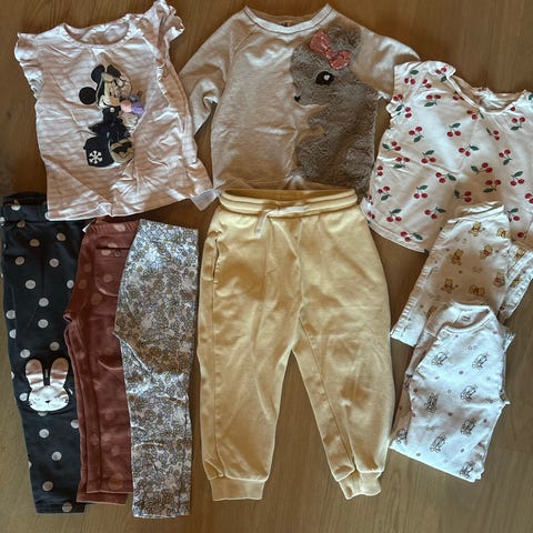 Klærne er pent brukt og i god stand, uten hull eller flekker. Perfekt som hverdagsklær eller barnehageklær 🌸