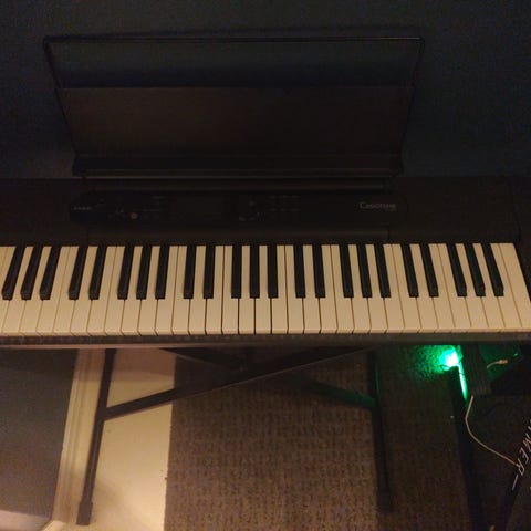 Casio LK-280 digitalt piano med 61 tangenter. Har innebygde funksjoner som song/rytme kontroll, metronom, innspilling, og flere lyd- og rytmevalg. Utstyrt med LCD-skjerm som viser noter og funksjoner. Leveres med stativ, mikrofon og stol.