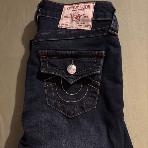 Selger true religion jeans type joey low rise flare i fargen lys blå. Den er i størrelse W25 tilsvarende XS.. Selges da de ikke satt som jeg ville og er litt for lange for meg. Har blitt brukt flere ganger men har ingen bruksmerker. Kjøpt ny for 1399kr.