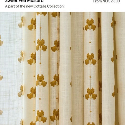 Gotain lingardin i nydelig terracottafarge. Gardinene har kun vært brukt til en filminnspilling og er som nye. Nypris starter på 2800 kr og de selges derfor betydelig rabattert til 1800 kr per gardin.