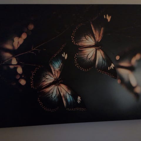Hel og pen, med naturlige variasjoner i treverket. Klar for oppheng.