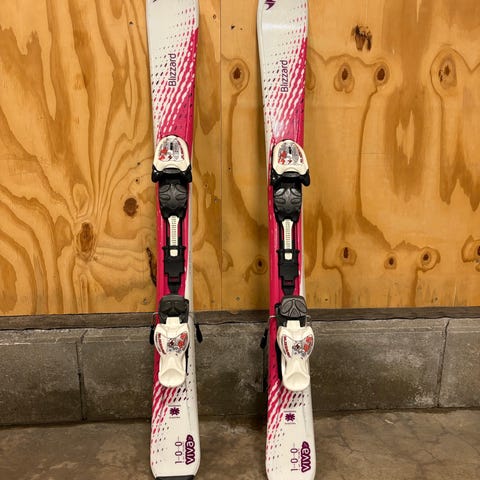 Tekno 100 RC Racing alpinski i blå og hvit farge. Skiene har en lengde på 100cm og er utstyrt med bindinger.