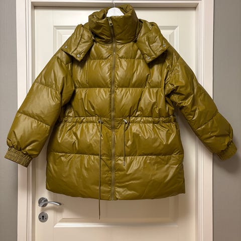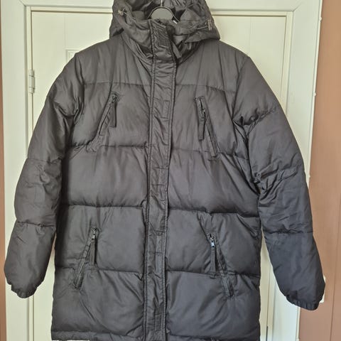 Kort grå dunjakke i str. L. Jakken er lett, og passer til jenter/damer.