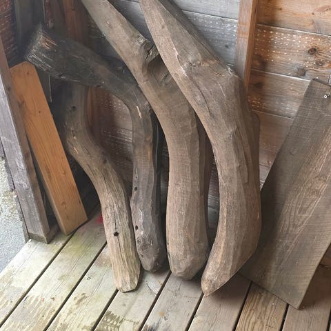 Treskiver eller andre former laget av gran. Ulike størrelser. Den største på bilde 3 er laget av ask. Prisene varierer, spør hvis du er interessert i noe.