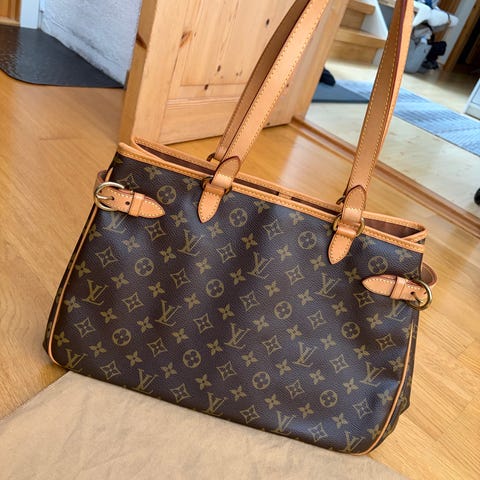 Louis Vuitton Dame lommebok laget i lær. Lommeboken har flere rom for kort og penger, med en klassisk design i brunt og beige fargetone.