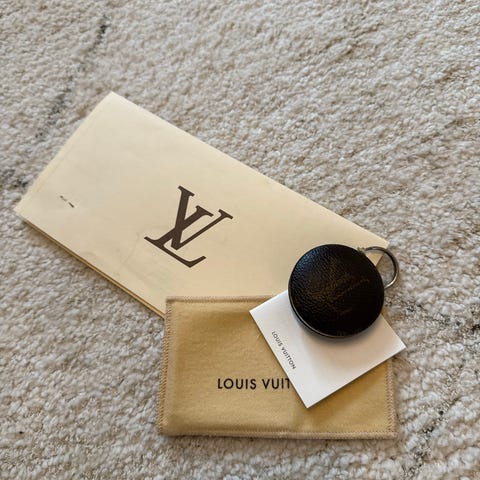 Louis Vuitton nøkkelring i sølvfarget metall designet for unisex bruk. Inkluderer en karabinkrok og en ring for feste av nøkler eller andre små gjenstander.
