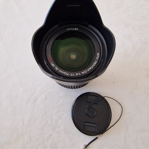 Pentax 16 - 50 f/2.8 med Bodenstock uv filter, og deksler foran og bak