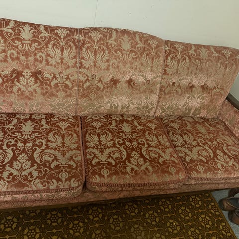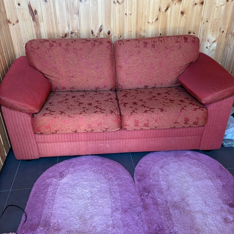 Sofa som fulgte med hus gis bort mot henting. Overraskende god å sitte i, virker som et møbel av god kvalitet