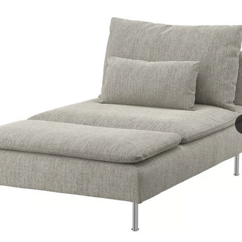 IKEA Alvar Aalto sofa med chaiselong i Tallmyra lystgrønt stoff. Sofaen har en pute og metallben. Kommer også med sidearmlene