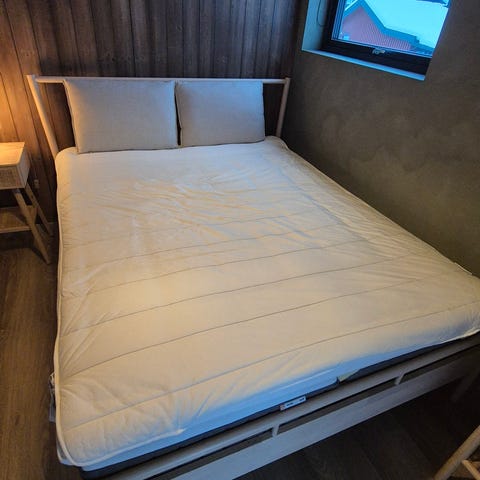 TEMPUR madrass med hvitt trekk. Produktet er designet for å gi støtte og komfort ved søvn. Brukt kun en uke!