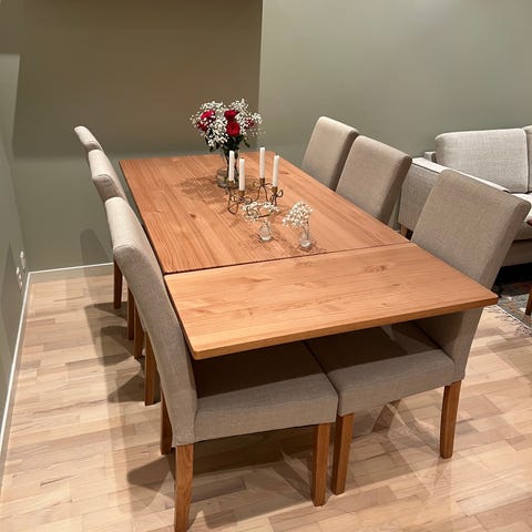 Spisestuebord m/2 ileggsplater & 8 stk. spisestuestoler selges