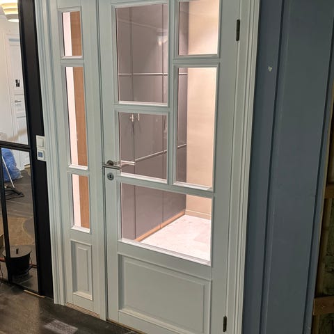 Kjempefin dør med overlysvindu!! Hadde store planer for denne døren men dessverre ble det endringer i prosjektet så vi kan ikke bruke den som planlagt.