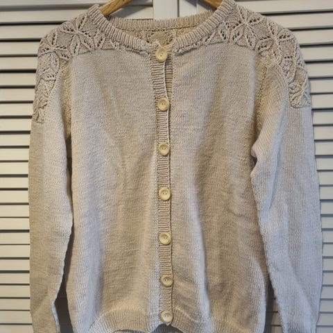 Håndstrikket ull jakke kofte cardigan. Tynn ull