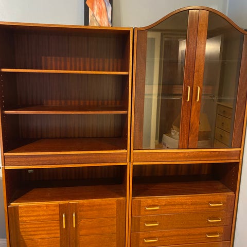 Kjempefint skjenkeskap fra Sven Andersen Møbelfabrikk i Stavanger. Inndeling med hyller og skuffer, har vært brukt til oppbevaring av glass, fint å låse bort glass med små barn i hus!