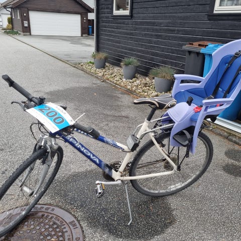 Bildene er fra selgeren jeg kjøpte sykkelen av for 3 år siden. Den har egentlig bare stått innendørs til pynt, så nå selger jeg den videre — til halv pris. Ferdig prutet.
