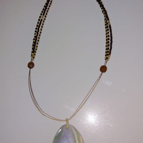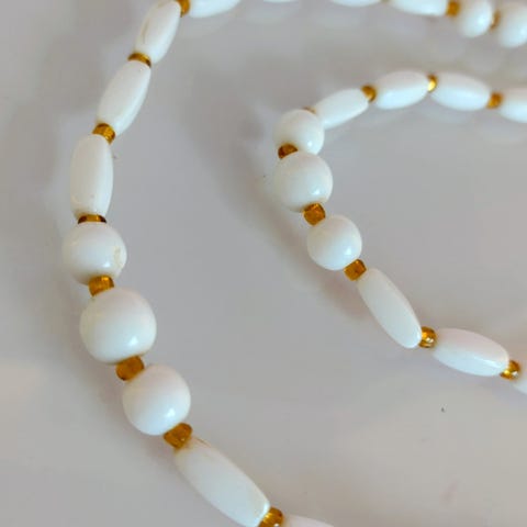 Vintage halskjede med små perler, kobber/bronsefarge.