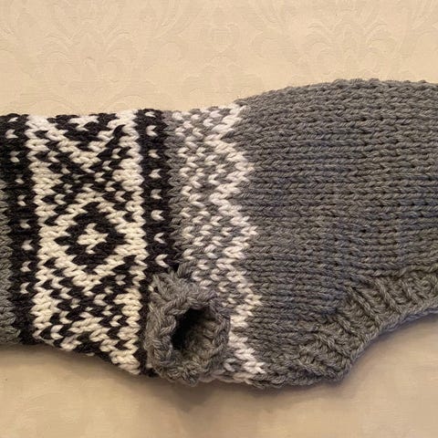 Kan maskinvaskes. Strikket i mariusmønsteret med godkjenning for å bruke mønsteret. 100% ull