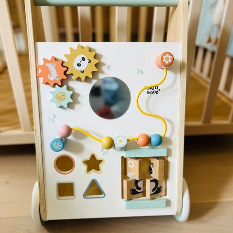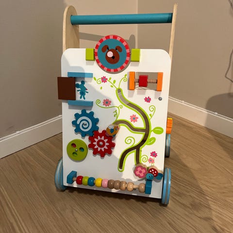 Søt gåvogn som har vært høyt elsket her hjemne. Vi selger med tungt hjerte, men yngstemann er nå ferdig med sin gåtrening og vil heller løpe fritt:) Normale bruksmerker.