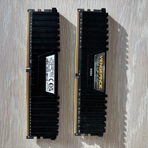 Corsair Vengeance DDR4 RAM-moduler 3200 MHz 16 GB. To minnemoduler med kjøleribber for bedre varmeavledning. Passer til datamaskiner som støtter DDR4-minne. Med led lys