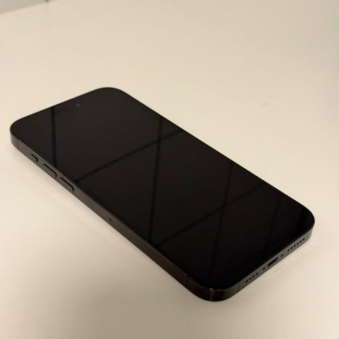 Apple iPhone 14 Pro Max mobiltelefon med 128 GB lagringskapasitet. Modellen har et moderne design med flere kameraer på baksiden og en skjerm med høy oppløsning. Telefonen leveres i fargen svart.