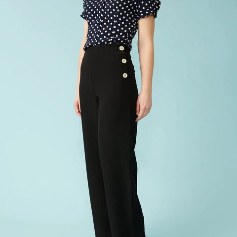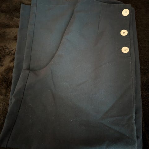 Bukse med glidelås og knapper på siden. Passer fint til smal midje òg timeglassfasong.
