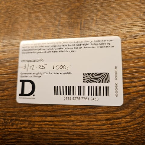Gavekort 750kr Dressmann