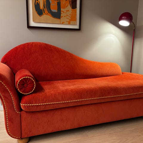 Veldig solid skinnsofa med tykt skinn i god kvalitet
