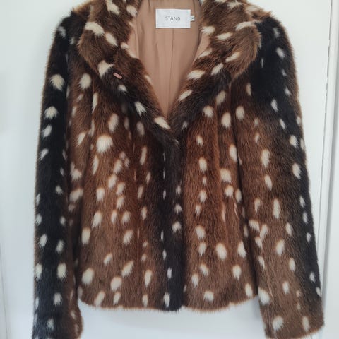 Selger en lekker fuskepelsjakke fra STAND i størrelse 34. Jakken er pent brukt og i svært god stand. Klassisk leopardmønster i myk og eksklusiv fuskepels, med kort passform som er enkel å style både til hverdags og fest.