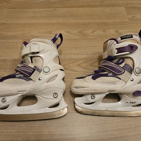 Barneskøyter i størrelse 26 med blå og svart farge. Skøytene har justerbare spenner for god passform og komfort. Egnet for barn som ønsker å lære eller drive med skøyting. Str. 26-29.