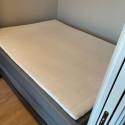 Senga er synlig brukt, men helt iorden.