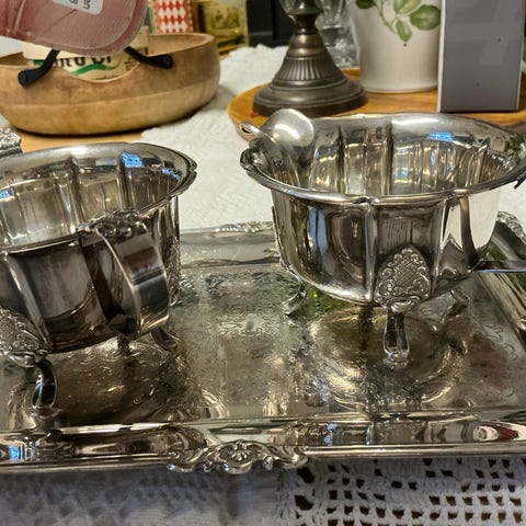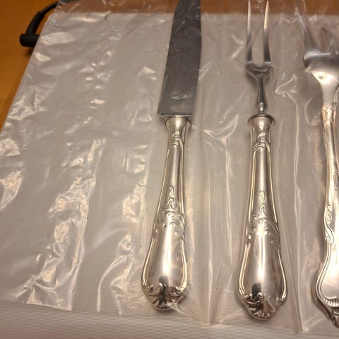 Tror ikke dette er sølv, men nysølv/sølvplett av noe slag