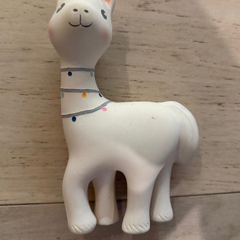 Tikiri -biteleken er laget av naturgummi og er perfekt for å berolige de smås tannkjøtt når de klør. Det bitende dyret har en rangle som lager beroligende lyder når du rister det og det er forskjellige teksturer.