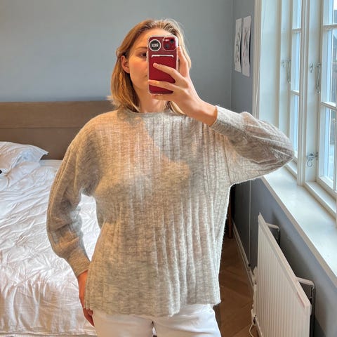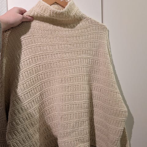 Hvis strikkegenser strikket i dobbel tråd drops kid silk og enkel tråd drops alpakka. Oversized passform.