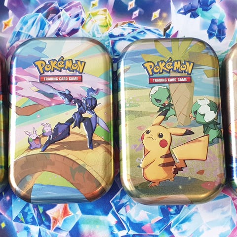 Pokémon Prismatic Evolutions Mini Tin. Hver inneholder 2x Booster Pakker mm.
