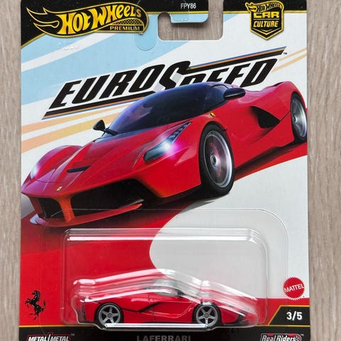 Hot Wheels Premium LaFerrari Eurospeed serie 3/5. Laget i metall med detaljer som etterligner den ekte sportsbilen LaFerrari. Passer som samlerobjekt eller leke for bilentusiaster.