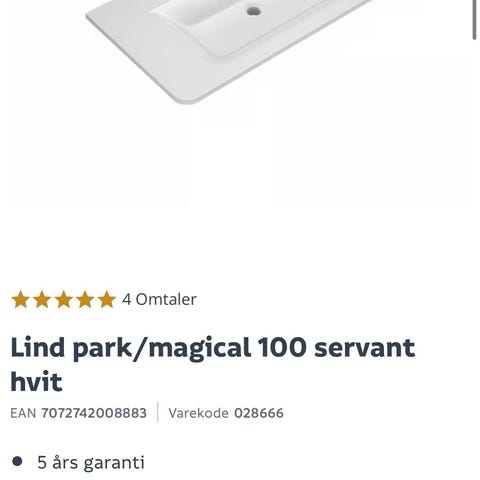 Servant som har fått en sprekk ved hull til kran, med påfølgende sprekk på noe cm utover det. Fullt mulig å bruke, kan også limes/fuges.