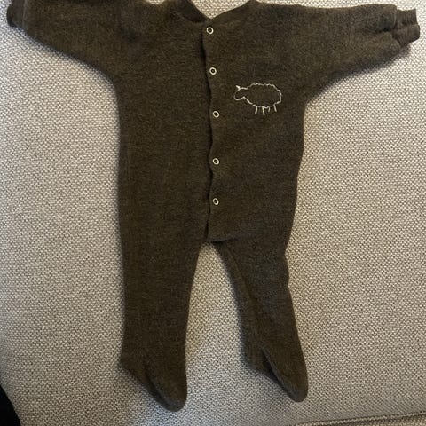 Nøstebarn pysj i ullfrotté med fot, str. 62
