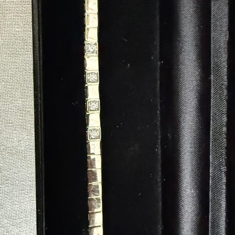 Massiv armring i hvitt gull 14 karat på hele 37 gram. Spesiallaget og med samme naturlige kvalitets diamant som ringen. 0,36 TW/VVS