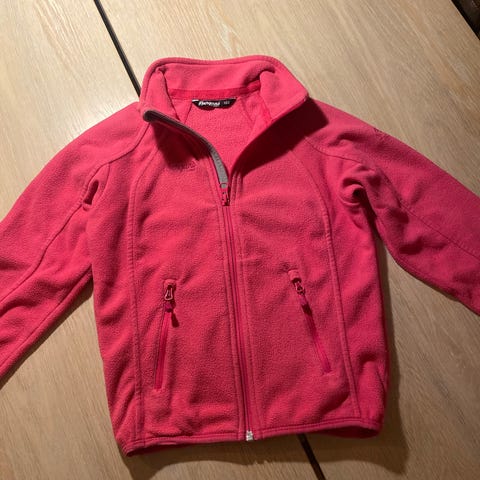 Bergans fleecejakke for barn i størrelse 122, unisex. Jakken er blå og laget av fleece-materiale. Den har hette og glidelås i front.
