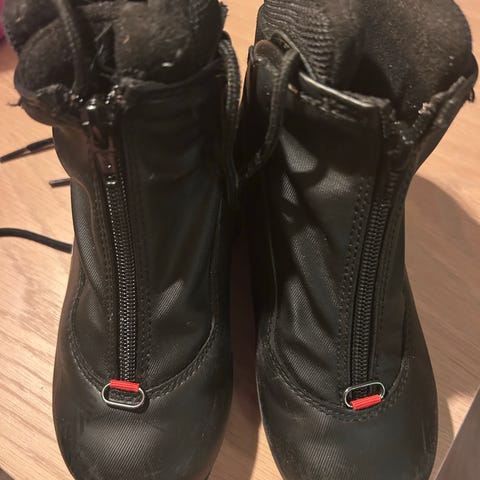 Herre Alpina langrennsstøvler i blå og hvit farge. Størrelse: 43. Støvlene har lukking foran med glidelås og borrelås. Lite brukt.