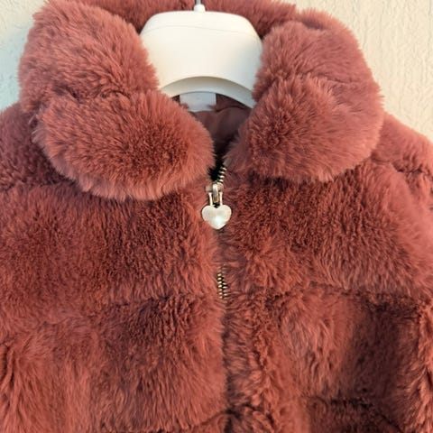 Lindex jakke i fuskepelsmateriale, rosa farge, størrelse 122, designet for jenter.