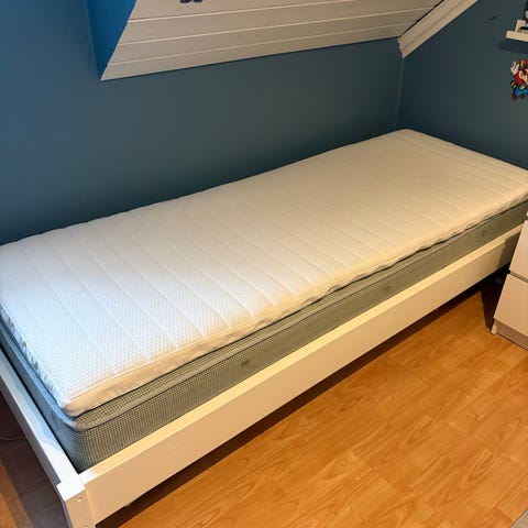 Solid pent brukt gjesteseng i metall med madrass 80 x 200 kr 400