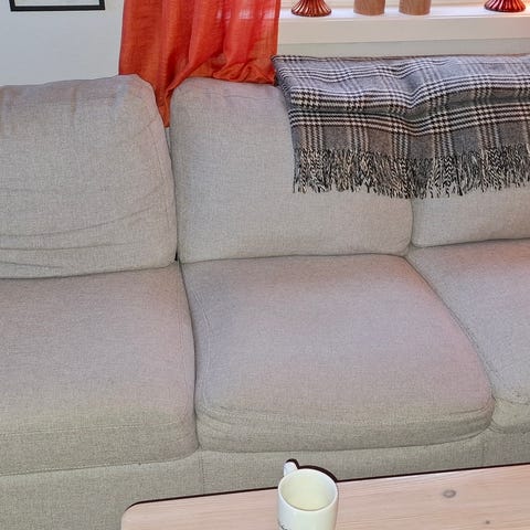 Den er pent brukt med beskyttelse på armlener og skinn i setene, så minimal slitasje på overflaten.