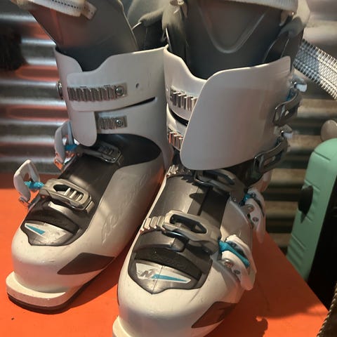 Nordica skistøvler størrelse 42. Størrelsen er stor og tilsvarer ca 43.. Fire spenner for justering og god passform. Egnet for alpint bruk. Støvlene har solid ytterskall og polstret innersåle for komfort.