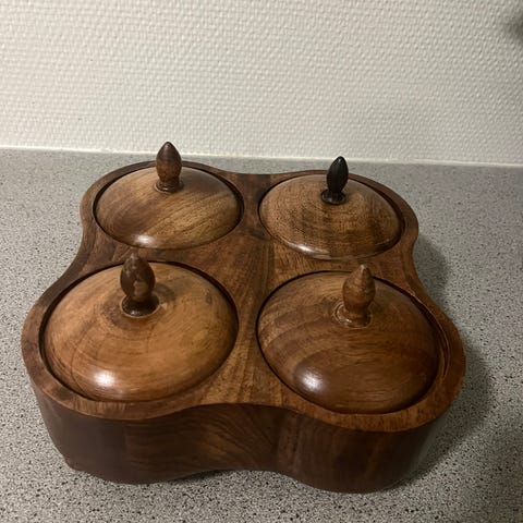 Håndlaget Kryddersett i Oliventre med 5 coctailgafler