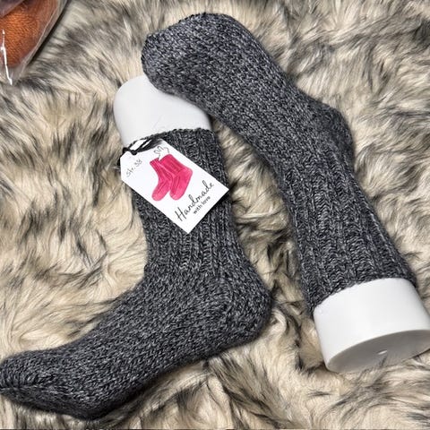 Håndstrikkede ullsokker grå og svart størrelse 38-39