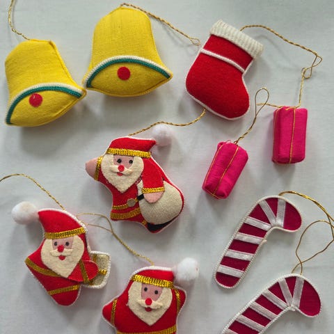 Julepynt. Juletrepynt i filt fra 1980-tallet.